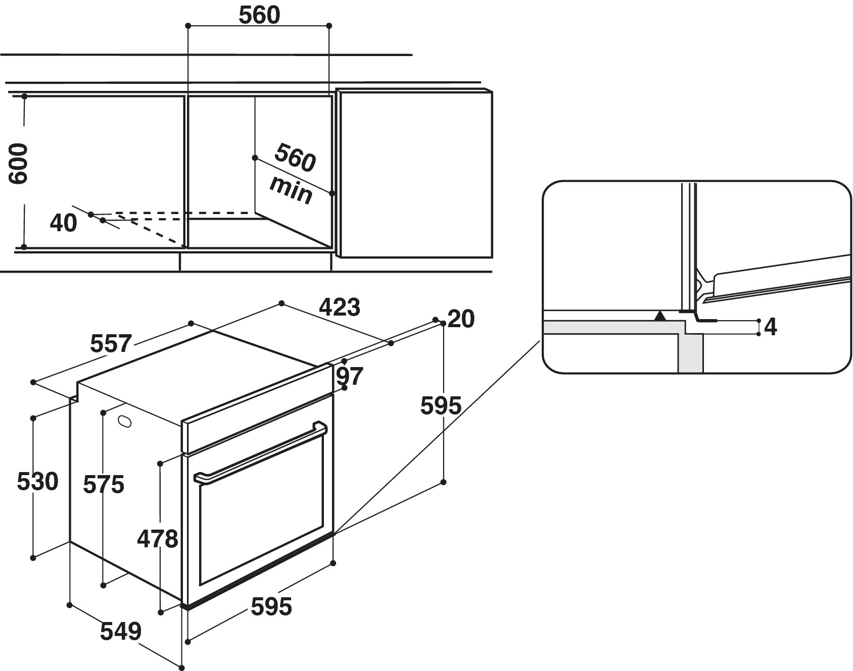 - Nischenmaße (HxBxT): 600x560x560 mm