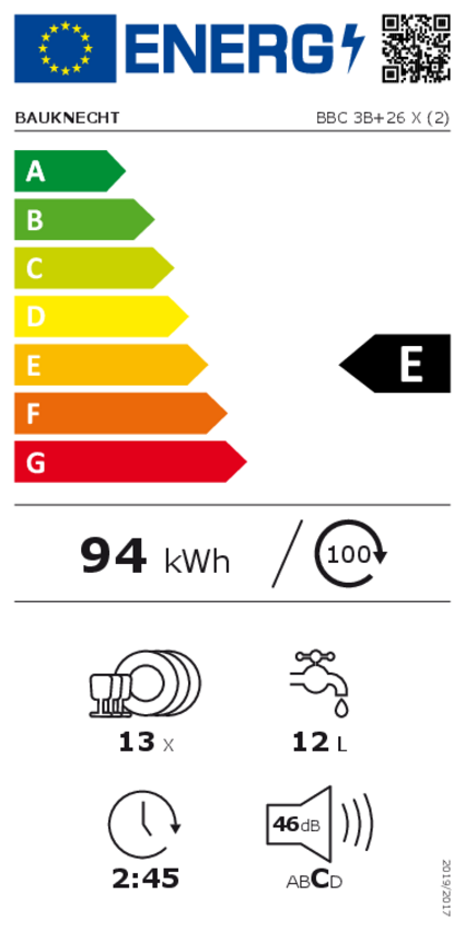 - Energieverbrauch des eco-Programms pro 100 Betriebszyklen: 94 kWh Strom