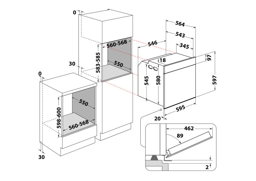 - Nischenmaße (HxBxT): 585x560x550 mm