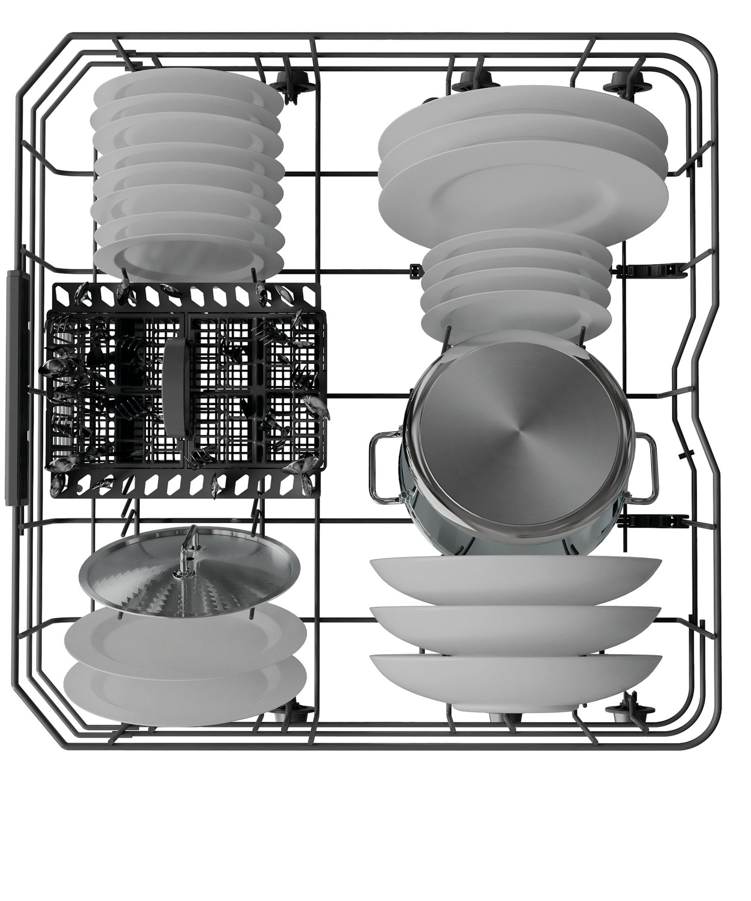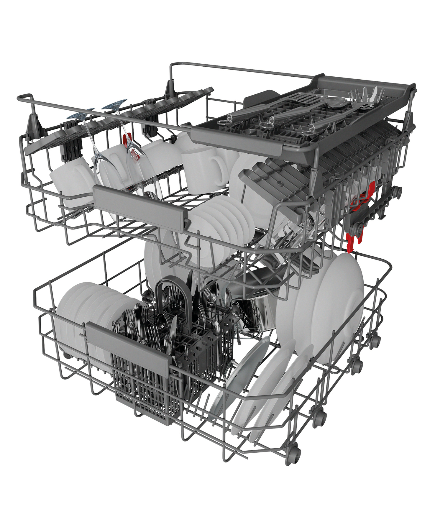 - 4 umklappbare Tellersegmente im Unterkorb