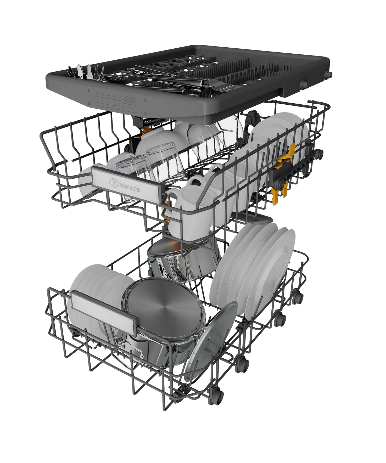 - 4 umklappbare Tellersegmente im Unterkorb