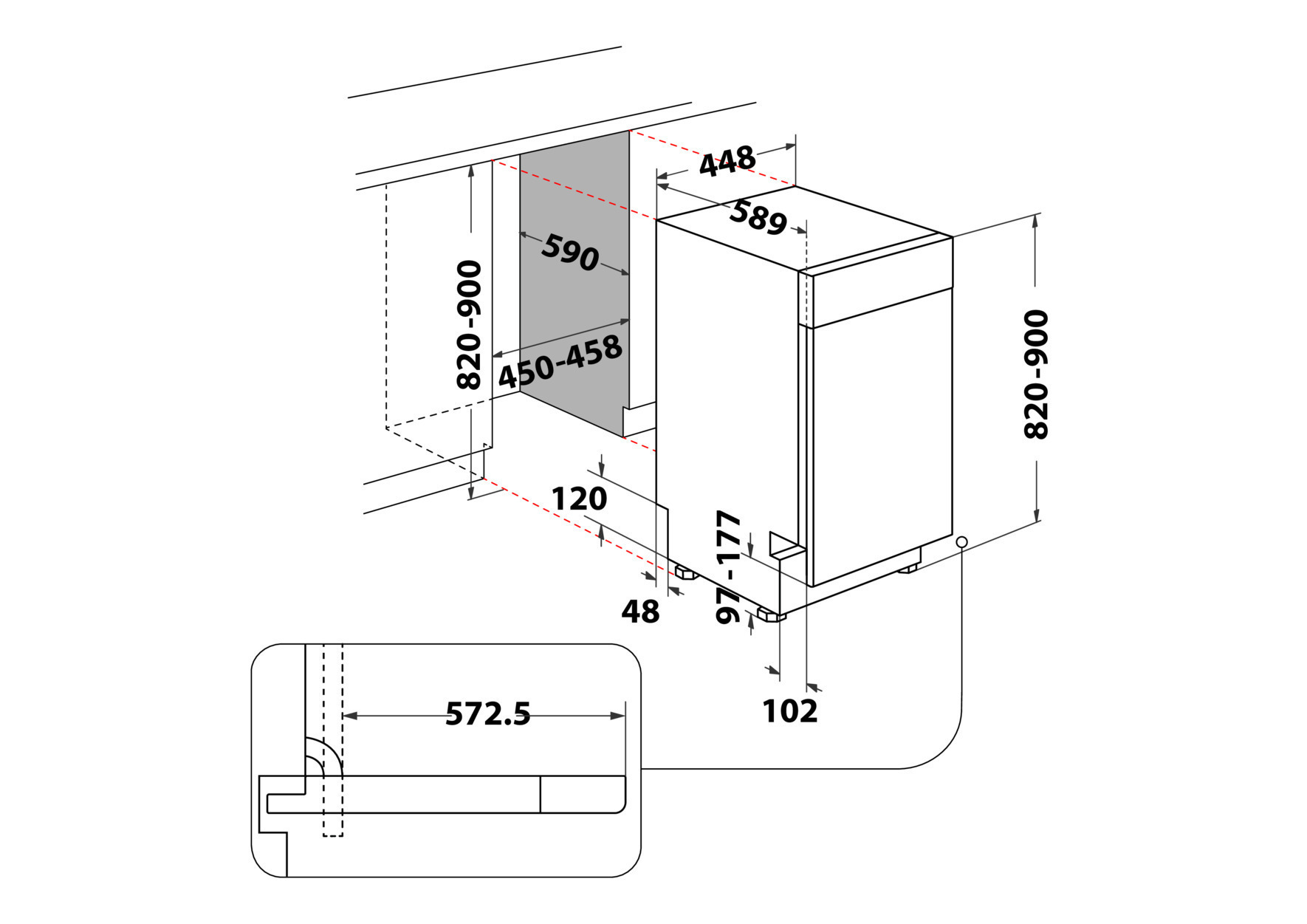 - Gerätemaße (HxTxB): 820x590x448 mm