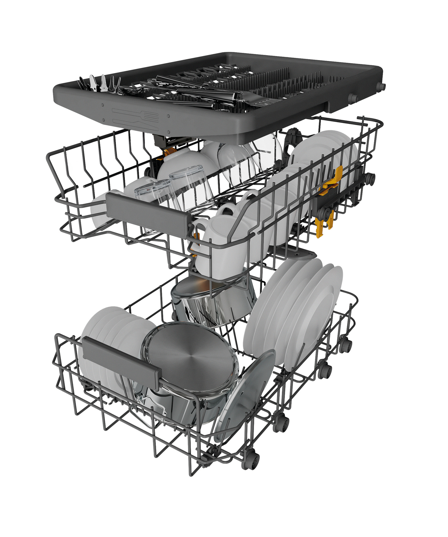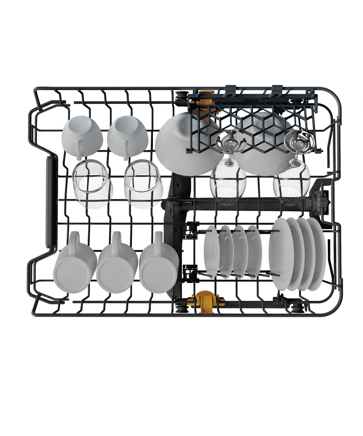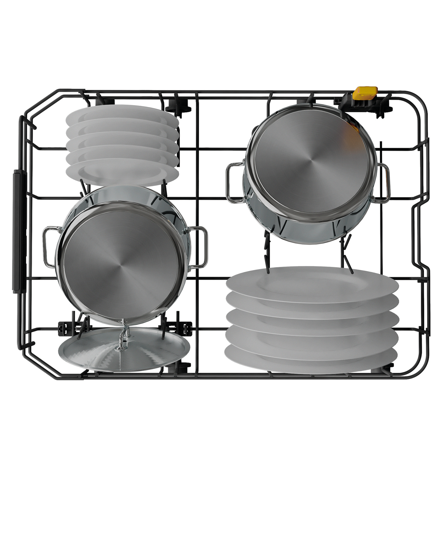 - 4 umklappbare Tellersegmente im Unterkorb
