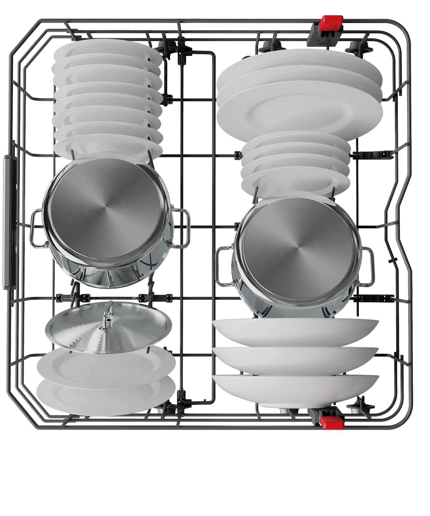 - 8 umklappbare Tellersegmente im Unterkorb