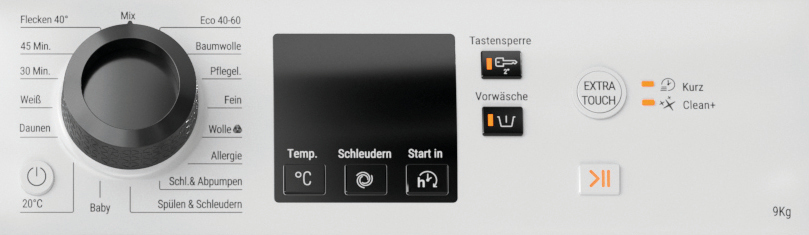 - Option Extra Touch – verkürzt wahlweise die Zyklusdauer oder intensiviert die Waschleistung