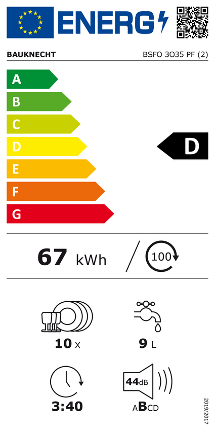- Energieverbrauch des eco-Programms pro 100 Betriebszyklen: 67 kWh Strom
