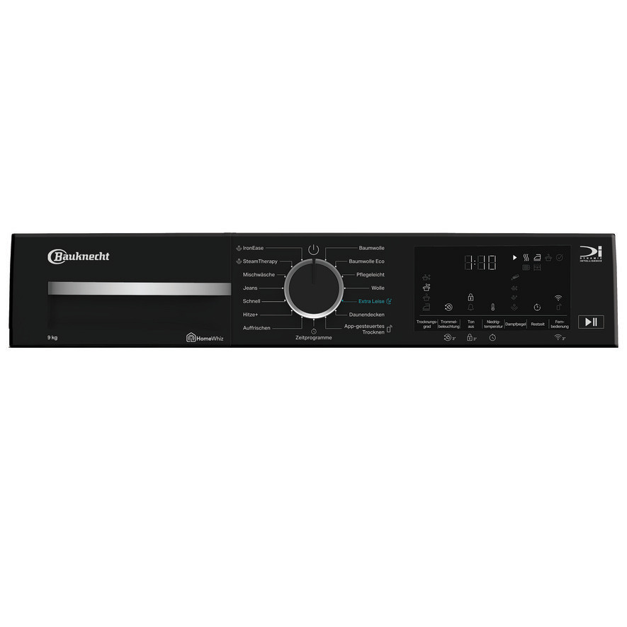 - Optionen: Start/Pause, Kurz-Option, Schonen, Trommelinnenbeleuchtung, Tonsignal am Programmende, Stumm, Additional Reversing