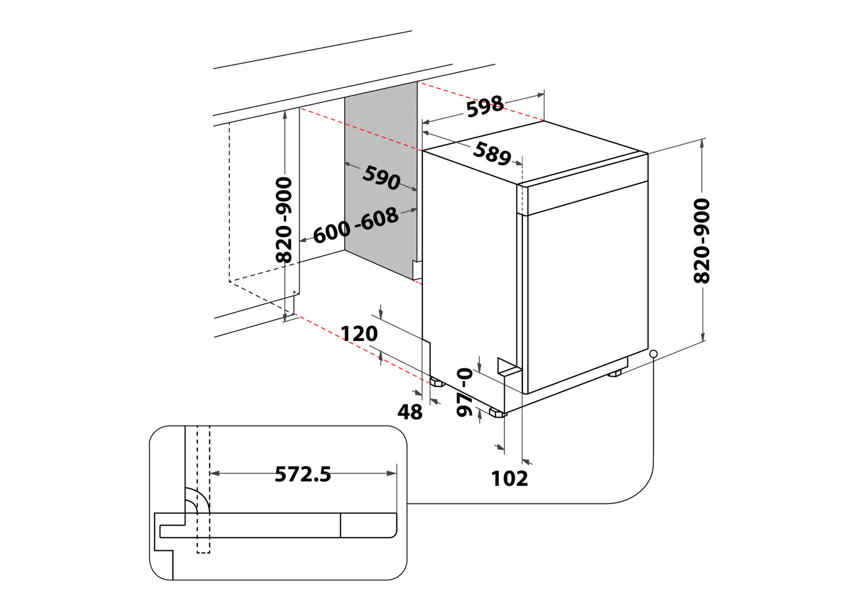 - Gerätemaße (HxTxB): 820x590x598 mm
