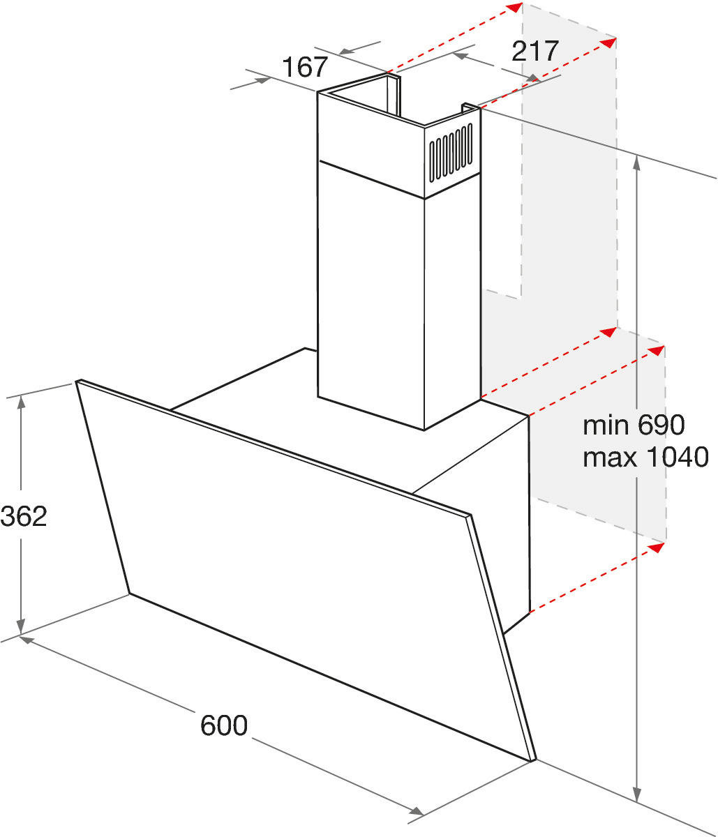 - Mindestabstand zum Elektrokochfeld 550 mm