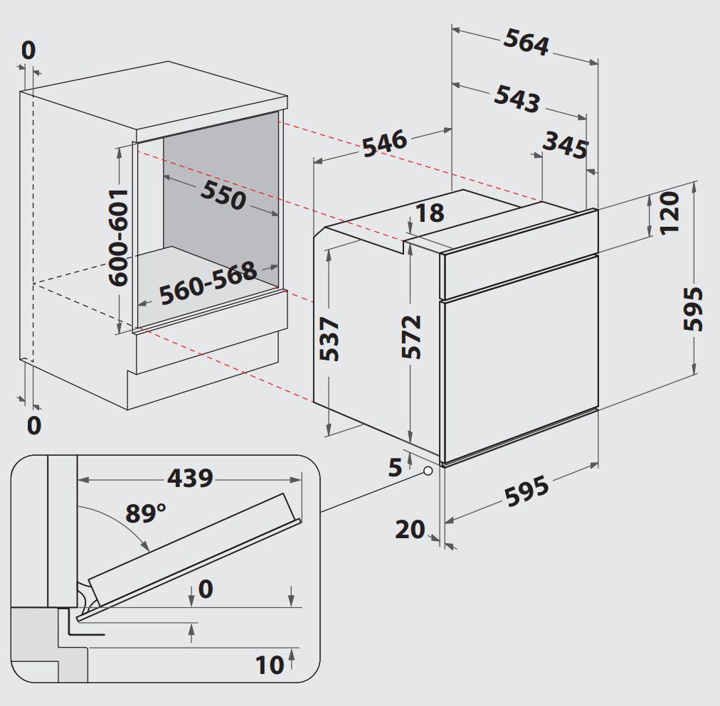 - Nischenmaße (HxBxT): 600x560x550 mm