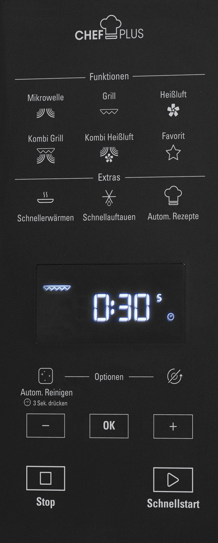 - Abschaltbarer Glasdrehteller 28 cm Ø