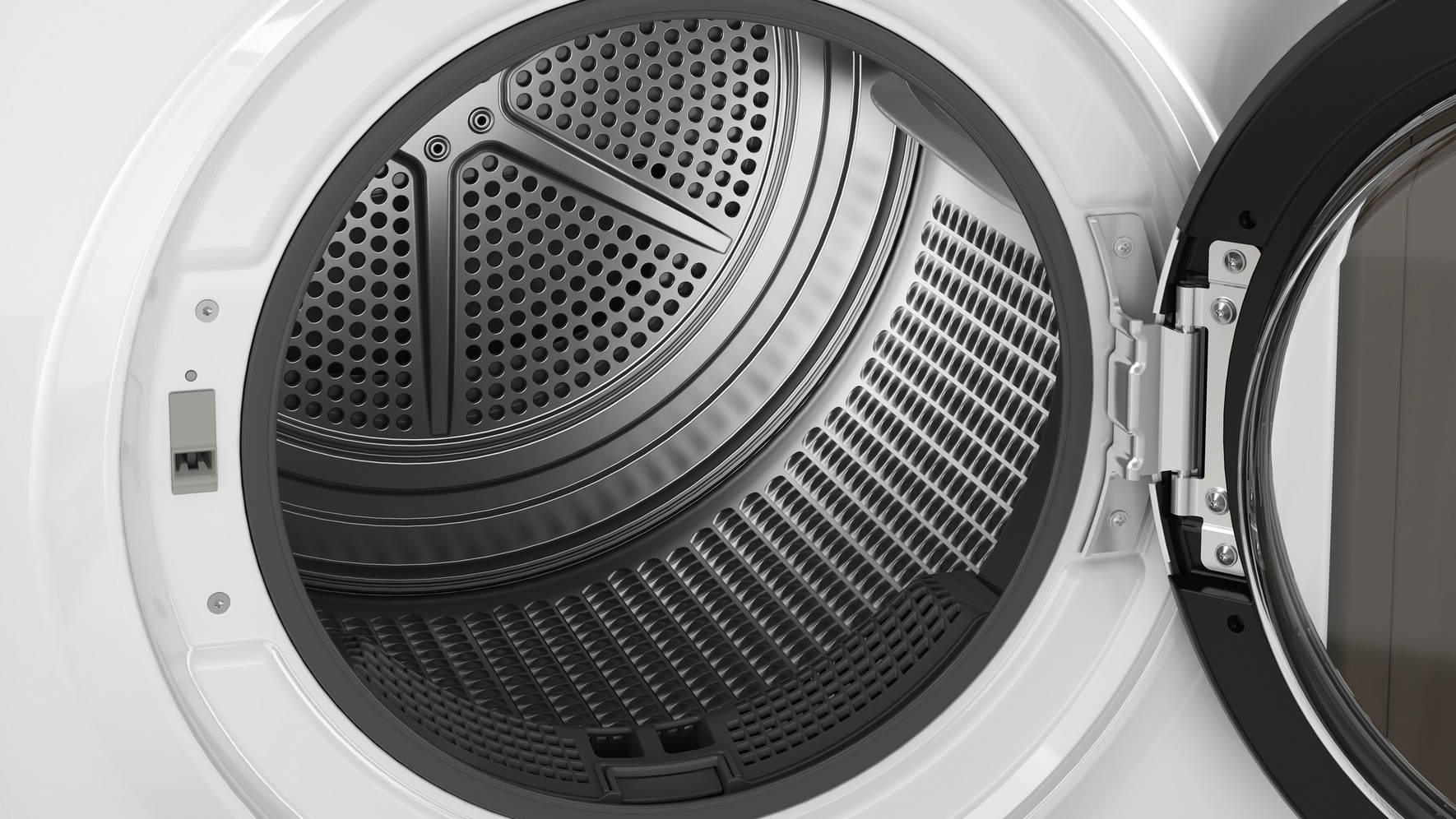 - 120 l Trommelvolumen: die große Trommel sorgt für zusätzliche Wäschepflege – Material: Edelstahl