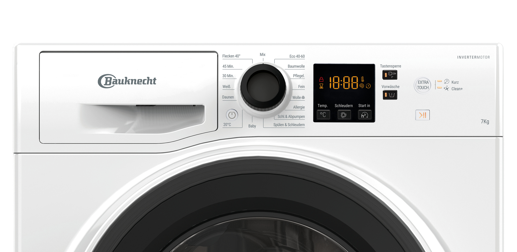 - Option Extra Touch – verkürzt wahlweise die Zyklusdauer oder intensiviert die Waschleistung