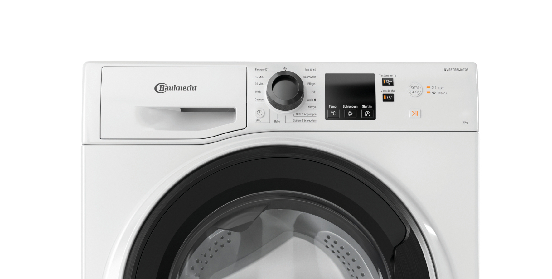 - Option Extra Touch – verkürzt wahlweise die Zyklusdauer oder intensiviert die Waschleistung