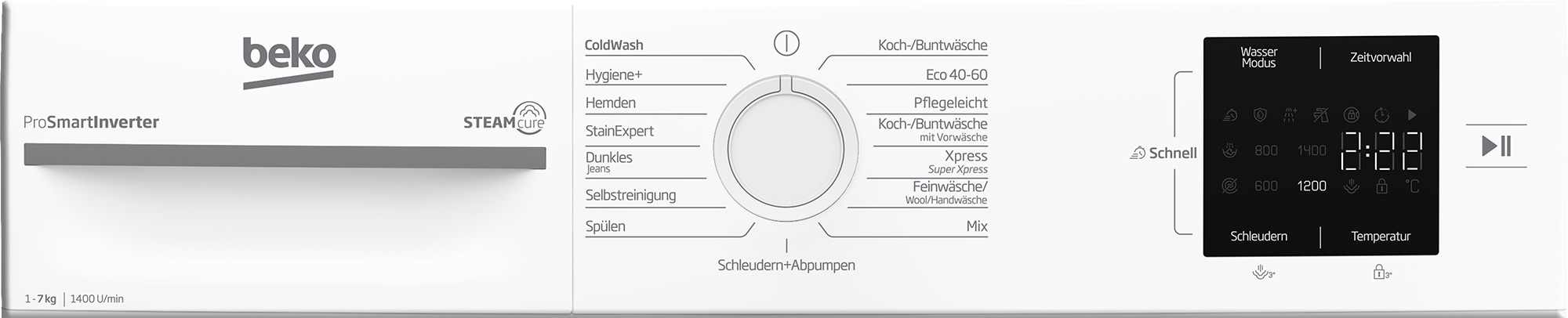 - Maximale Schleuderdrehzahl: 1400 U/min