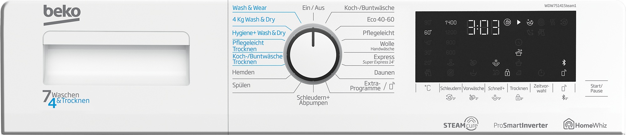 - Jährlicher Energieverbrauch Waschen + Trocknen: 952 kWh