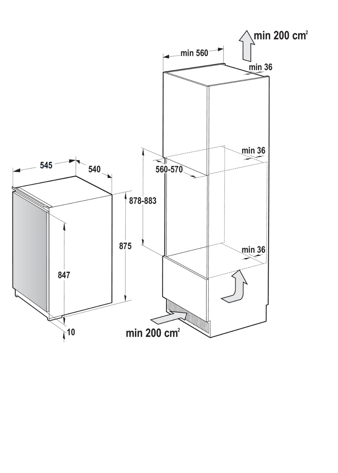 - Breite der Nischengröße für die Installation min.: 560 mm