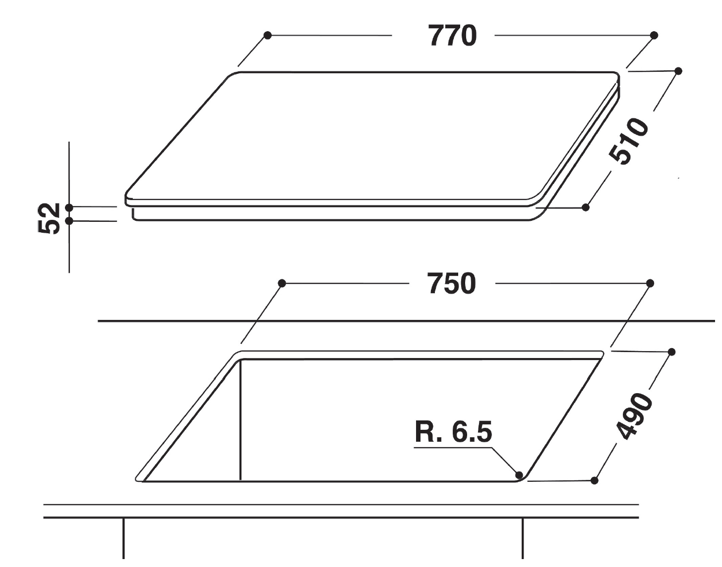 - Breite Kochfläche: 77 cm