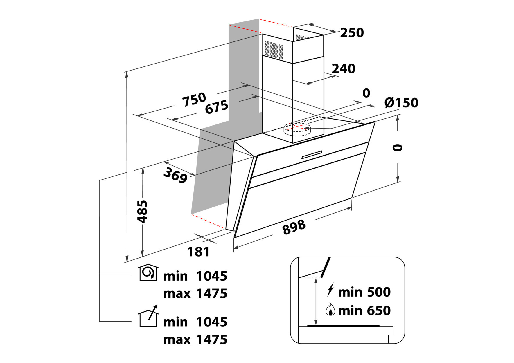 - Mindestabstand zum Elektrokochfeld 400 mm