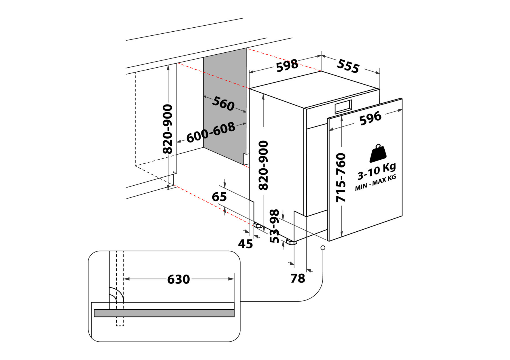 - Gerätemaße (HxTxB): 820x555x598 mm