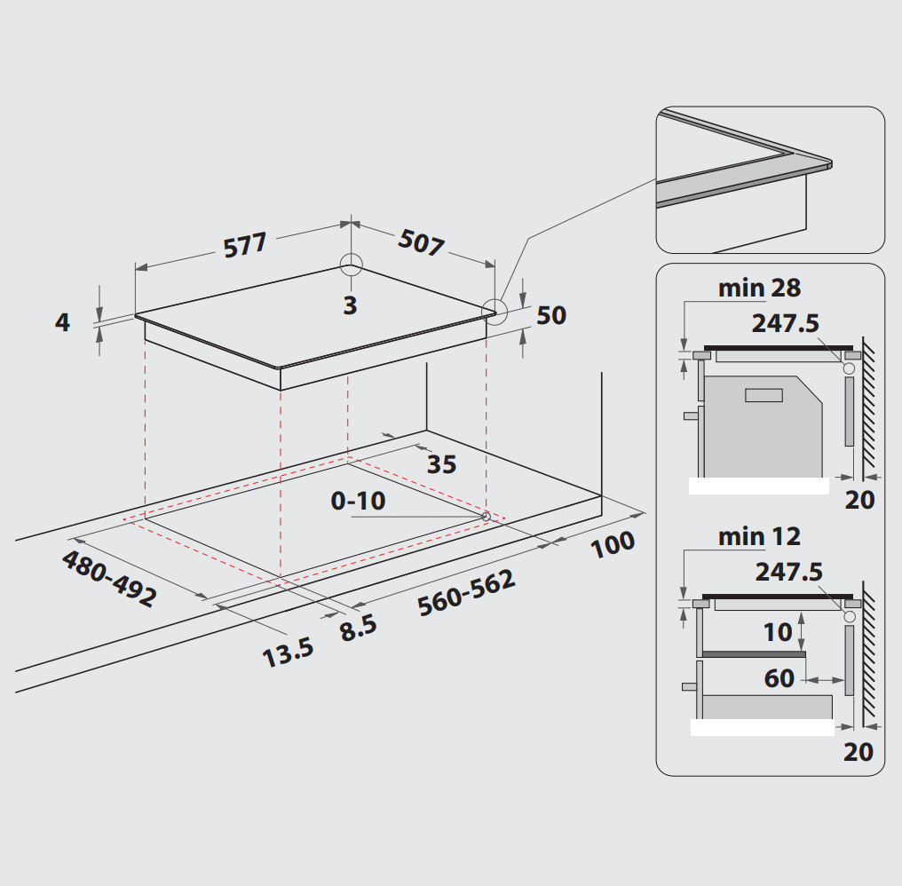 - Hinten links: 21 cm Ø, 2100 Watt, Booster 3000 Watt