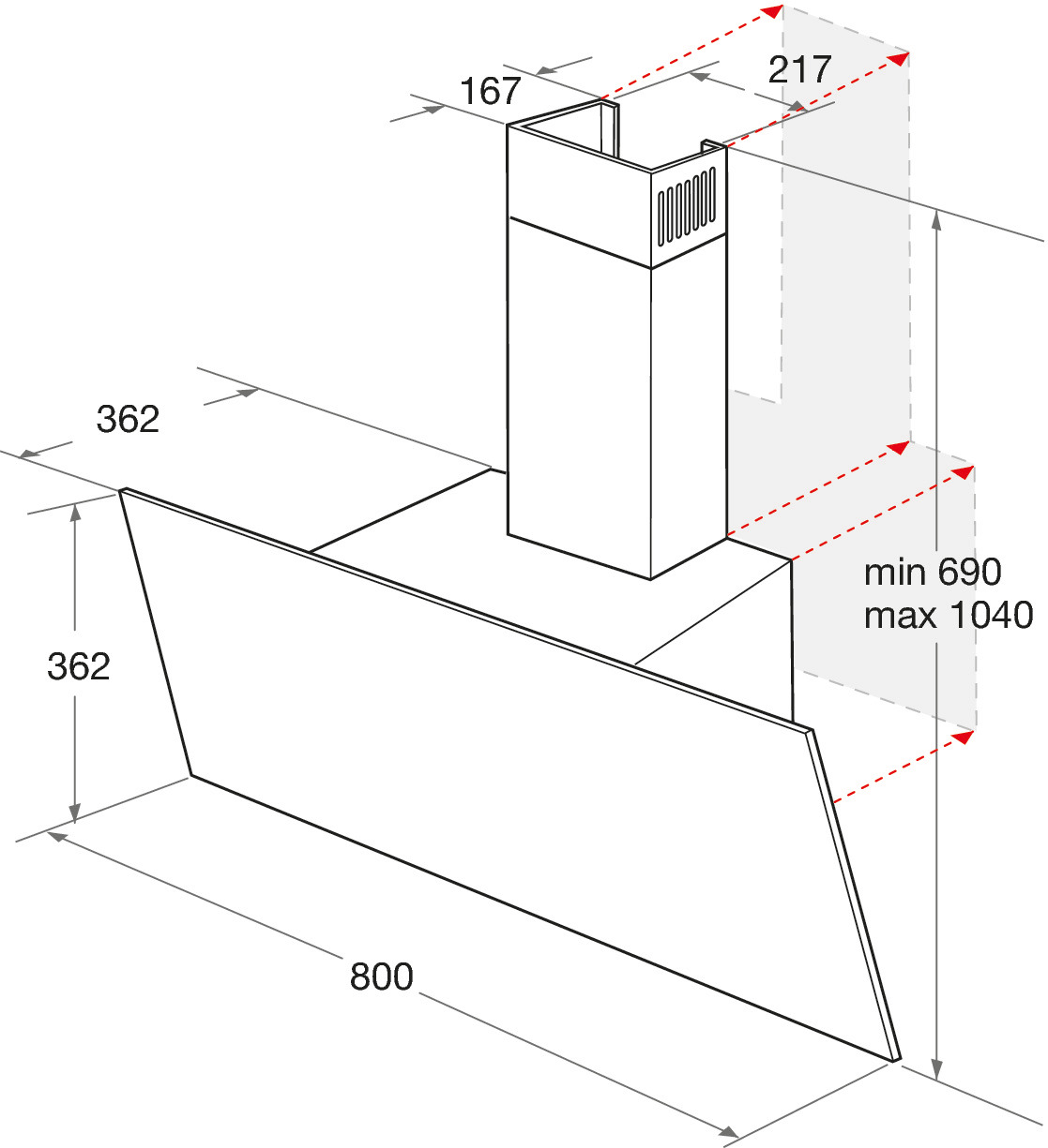 - Mindestabstand zum Gaskochfeld 700 mm