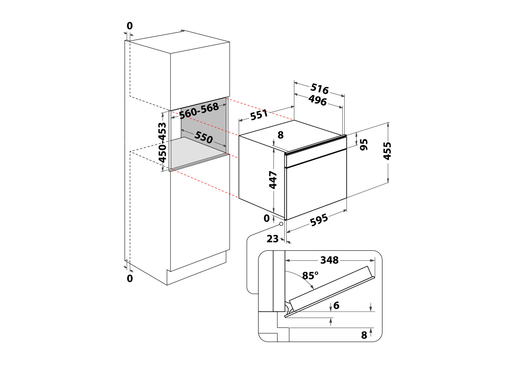 - Nischenmaße (HxBxT): 450x560x550 mm