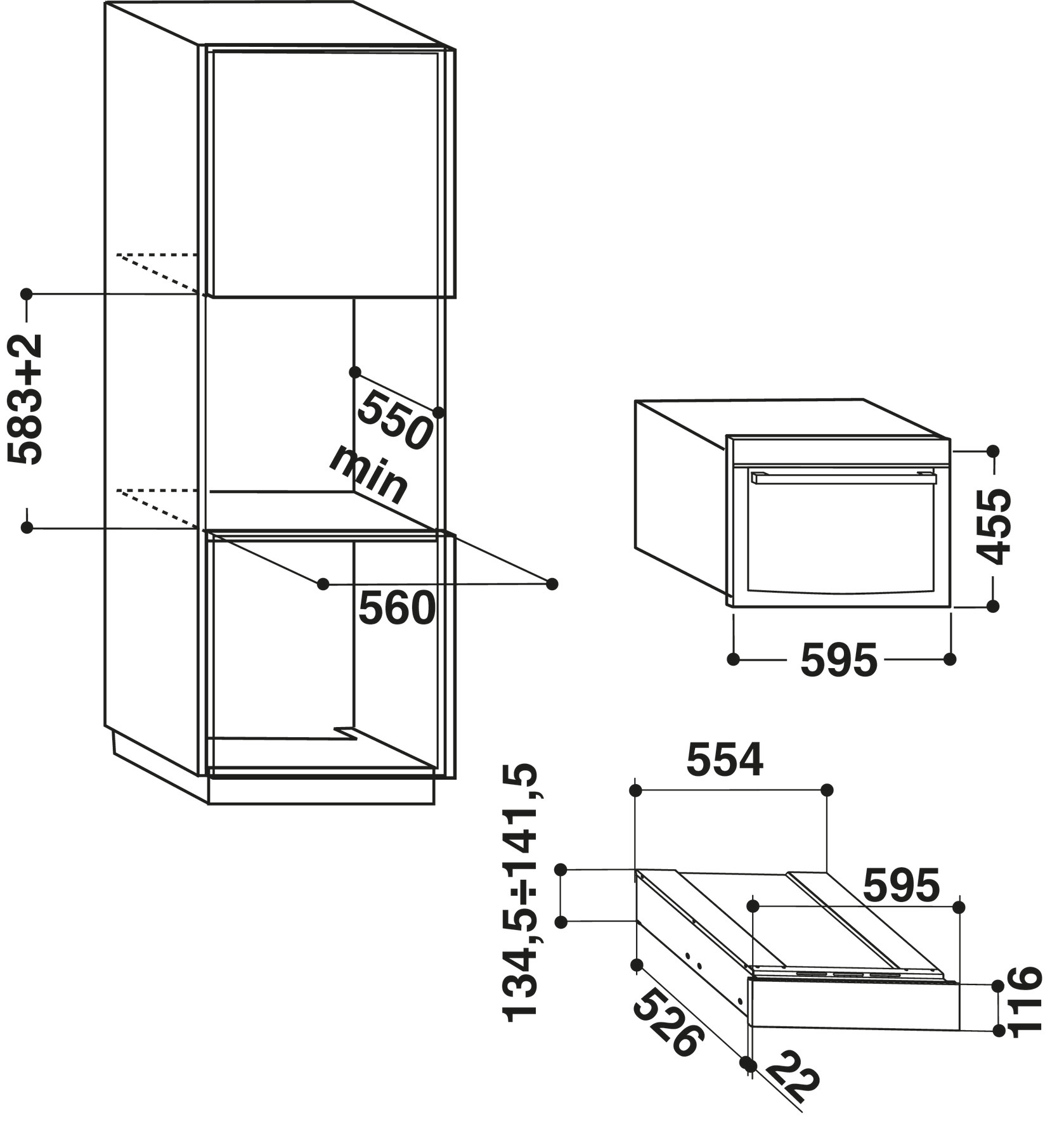 - Gerätemaße (HxBxT): 141,5x595x526 mm