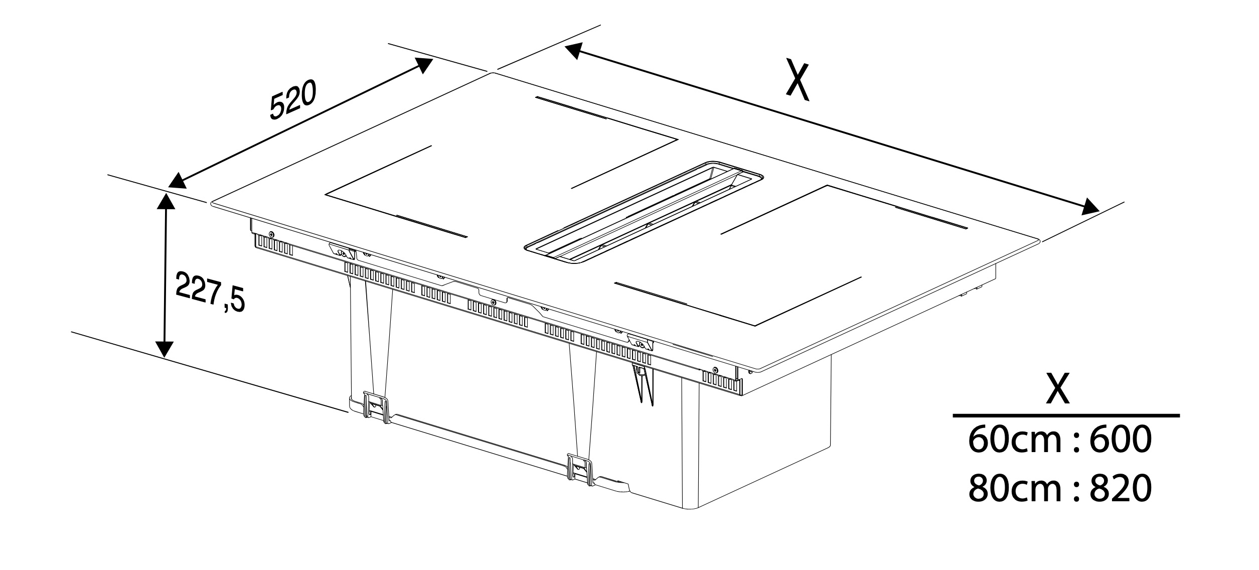 - Abmessungen Unverpackt (H x B x T), mm: 223,5 x 820 x 520